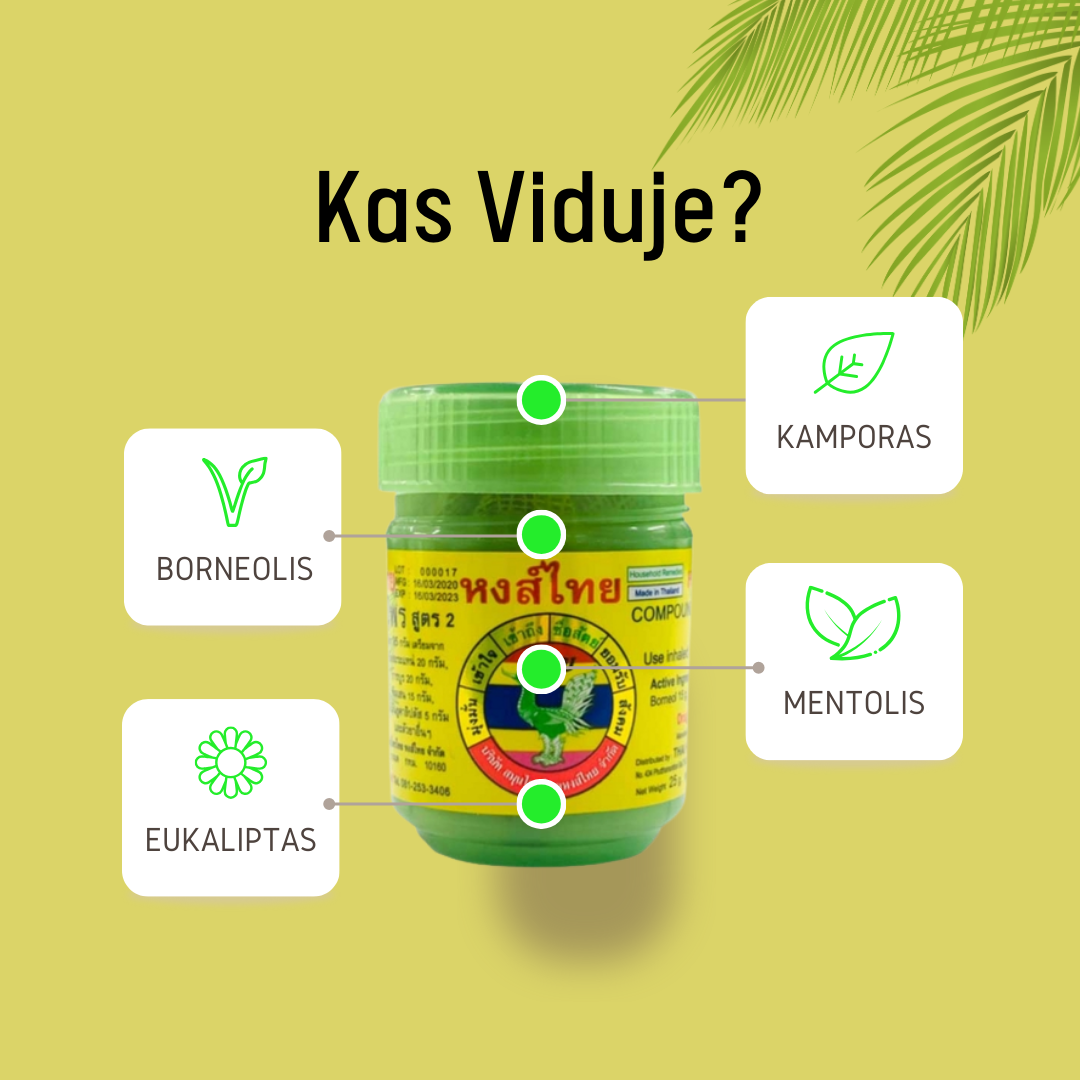 Dabīgas Taizemes augu izcelsmes sastāvdaļas atver elpceļus un sniedz viegluma sajūtu. Tas ir veids, kā elpot brīvi un ērti.